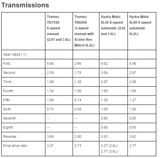75 inch 85 inch 105. Second Gear Ratio 1 259. 5th Generation Camaro - News and Information.
